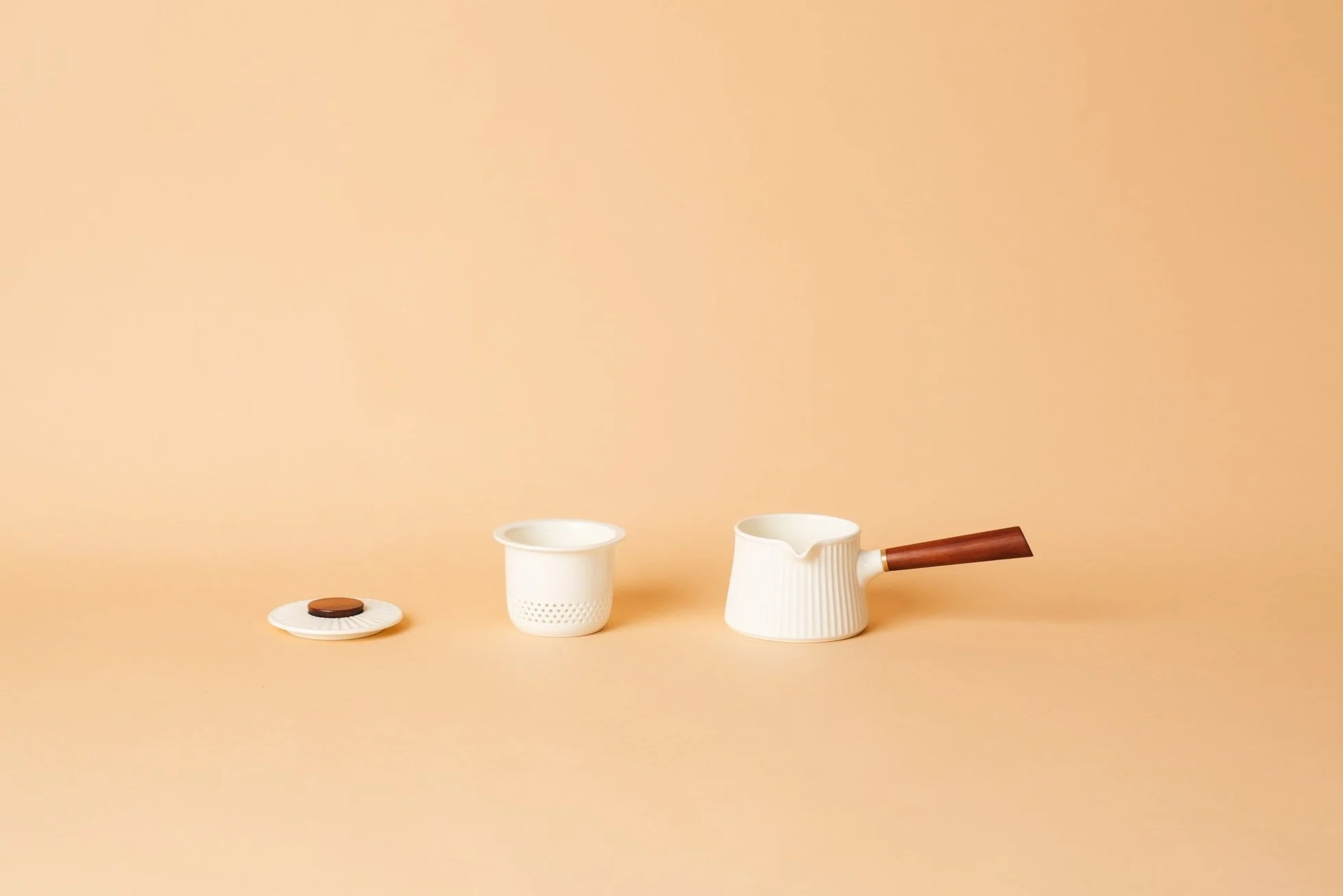 One detached wooden handle that can be screwed on the teapot